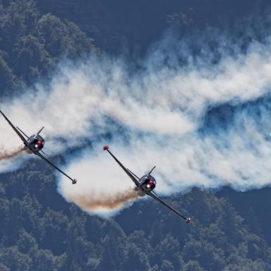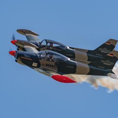 In den Cockpits dieser majestätischen Maschinen werden Sie Vater und Sohn sehen. Der junge Nico, 29 Jahre alt, führt das Team als Teamleiter an und besitzt bereits seit seinem 16. Lebensjahr eine Lizenz für das Motorfliegen. Sein Vater Ralf, ein 57-jähriger Veteran der Flugshows, ist sein zuverlässiger "Wingman" in der Luft. In der Tschechischen Republik wird dieses Duo zum ersten Mal auftreten.