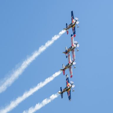 Že už jste někdy tuto skupinu viděli? Věřte, že to vůbec nevadí. Flying Bulls Aerobatics Team totiž vyhledávají další výzvy a připravují čím dál obtížnější sestavy. „Při vystoupeních nalétáme až 70 kilometrů, během kterých předvedeme přibližně 38 akrobatických prvků. Naše těla se přitom musejí vyrovnávat s obrovským přetížením +7G / -5G. Tlak, který přitom působí, je obrovský,“ popisují.